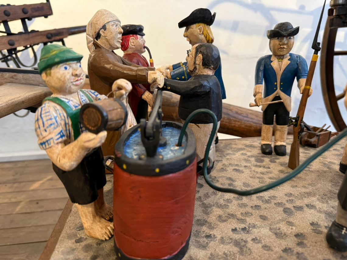 Ein besonderes Highlight erwartet die Besucher im ersten Obergeschoss: Dort steht das Modell einer historischen Handdruck-Feuerspritze bereit, die selbst ausprobiert werden kann. So lässt sich hautnah erleben, wie früher mit reiner Muskelkraft Löschwasser gefördert wurde.