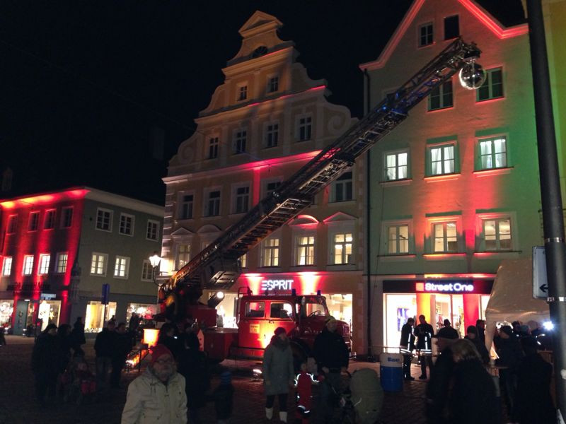 In Zusammenarbeit mit der Feuerwehr Kaufbeuren haben wir heuer das erste mal beim Candle-Light-Shopping teilgenommen. Unsere alte Drehleiter diente als Blickfang für den Stand der Feuerwehr. Solche Veranstaltungen bieten eine tolle Möglichkeit den Besuchern unsere fahrbereiten Fahrzeuge zu präsentieren, die normalerweise in einem Depot aufbewahrt sind und nur zu solchen Aktionen zum Einsatz kommen.