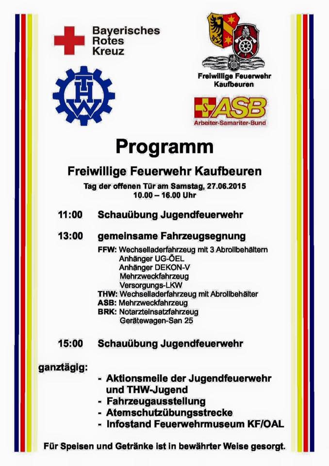 Der Tag der offenen Tür mit allen Hilfsorganisationen bei der Freiwilligen Feuerwehr war ein großer Erfolg. Die Fahrzeugweihe mehrerer Fahrzeuge von ASB, BRK, THW und Feuerwehr war ein außergewöhnliches Erlebnis. An unserem Stand vom Feuerwehrmuseum Kaufbeuren - Ostallgäu wurden die Besucher über Brandschutz, die Rauchmelderpflicht informiert, außerdem wurden Artikel aus dem Museumshop angeboten.