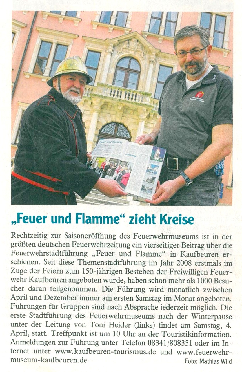 Die Kaufbeurer Stadtführung „Feuer und Flamme“ in der größten deutschen Feuerwehrzeitung