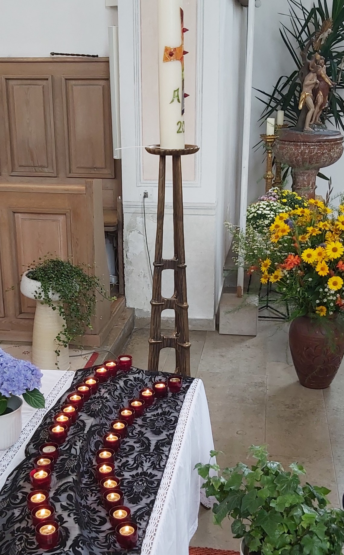 Am Nachmittag fand dann ein Gedenkgottesdienst in der Aitranger Kirche St. Ulrich und die kirchliche Weihe der neuen Gedenkstätte am Unglücksort statt. Zahlreiche Gläubige, Aitranger Fahnenabordnungen, die Musikkapelle Aitrang und die Landrätin Maria-Rita Zinnecker begleiteten die Gäste. Bürgermeister Michael Hailand verlas die Namen der Toten, zu deren Ehren je eine Kerze angezündet wurde.