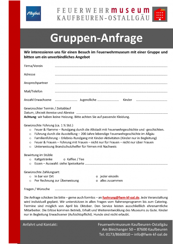 Dies ist ein Angebot des Feuerwehrmuseum Kaufbeuren - Ostallgäu e.V. Ein vollständiges Impressum finden Sie unter: [Link zum Impressum der Homepage].